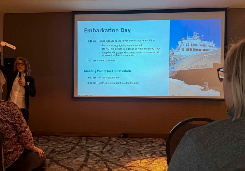南極、サウスジョージア、フォークランド諸島の旅への出航の前日、ホテルでブリーフィングがありました。 The day before departure for our journey to Antarctica, South Georgia, and the Falkland Islands, a briefing was held at the hotel.