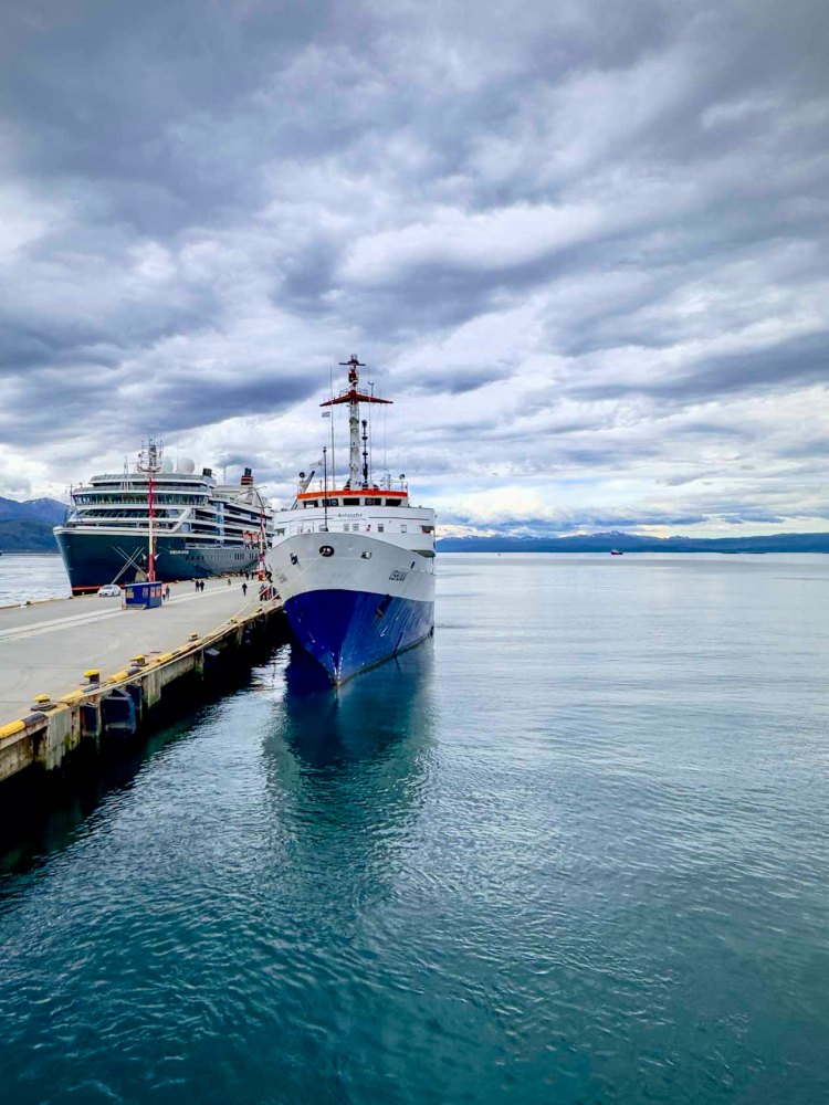 ウシュアイアの街を後ろに、これから20日間の船の旅に出る実感が徐々に湧いてきました。鳥インフルエンザの影響で、1年間延期しなければならなかった末の旅でした。 Leaving Ushuaia behind, the reality of embarking on a 20-day voyage gradually sank in. This journey had been postponed for a year due to the impact of avian influenza.