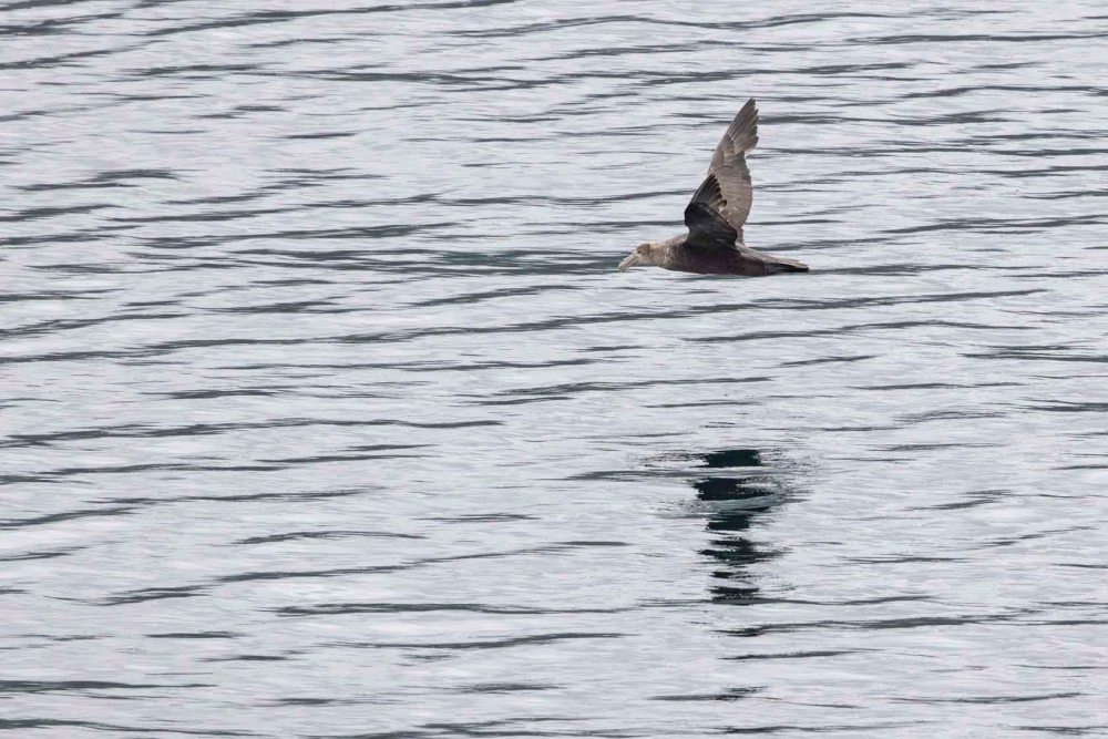 ちょうど、このオオフルマガモが船の側から羽ばたいていきました。南極の鳥で、1メートルぐらいの大きさです。羽を伸ばすと2メートルになると言われています。 Just then, this Southern Giant Petrel took flight from beside the ship. It’s an Antarctic bird, about one meter in size. It’s said that when it spreads its wings, it reaches two meters.