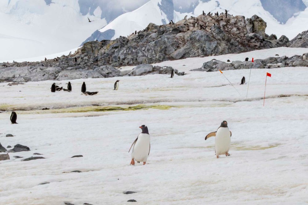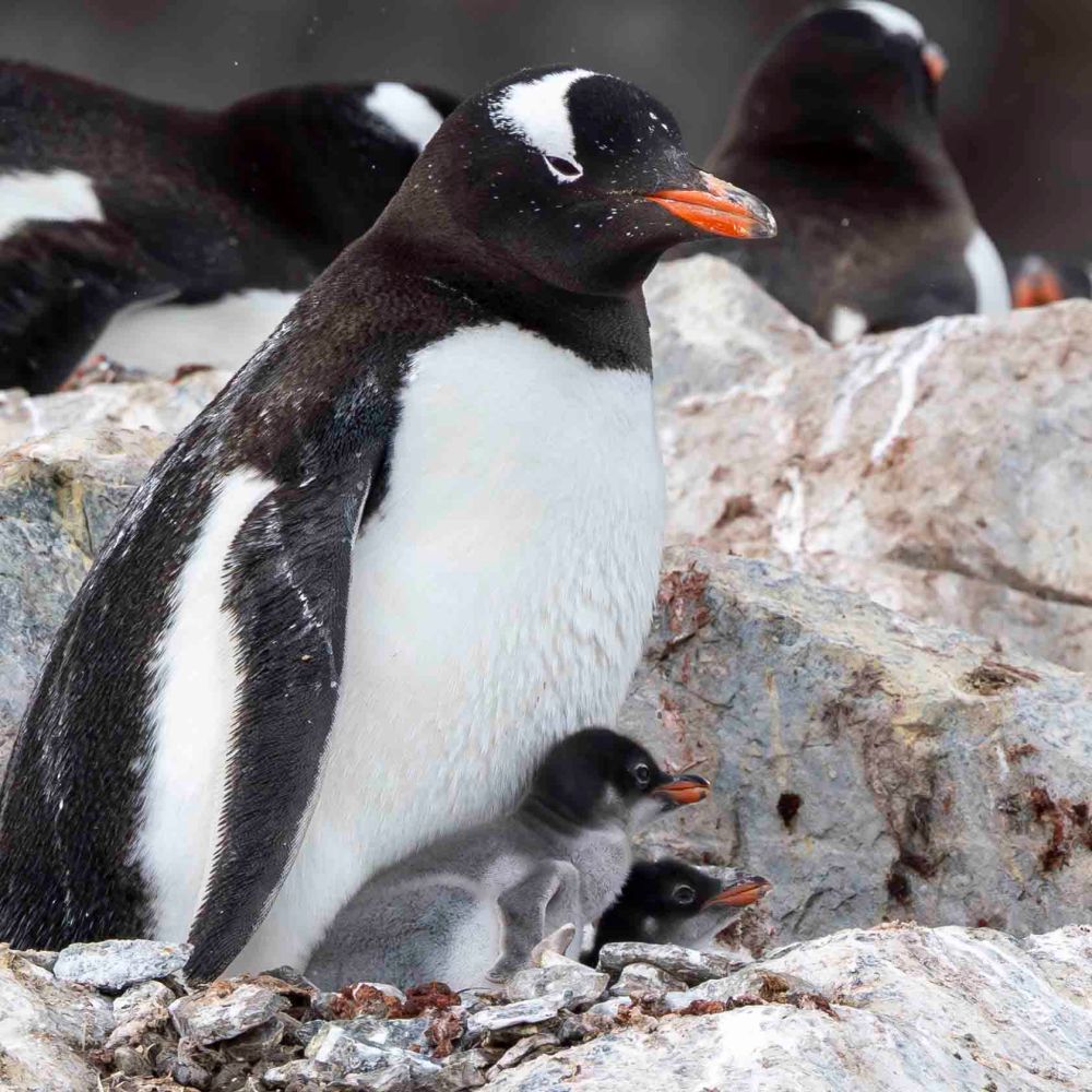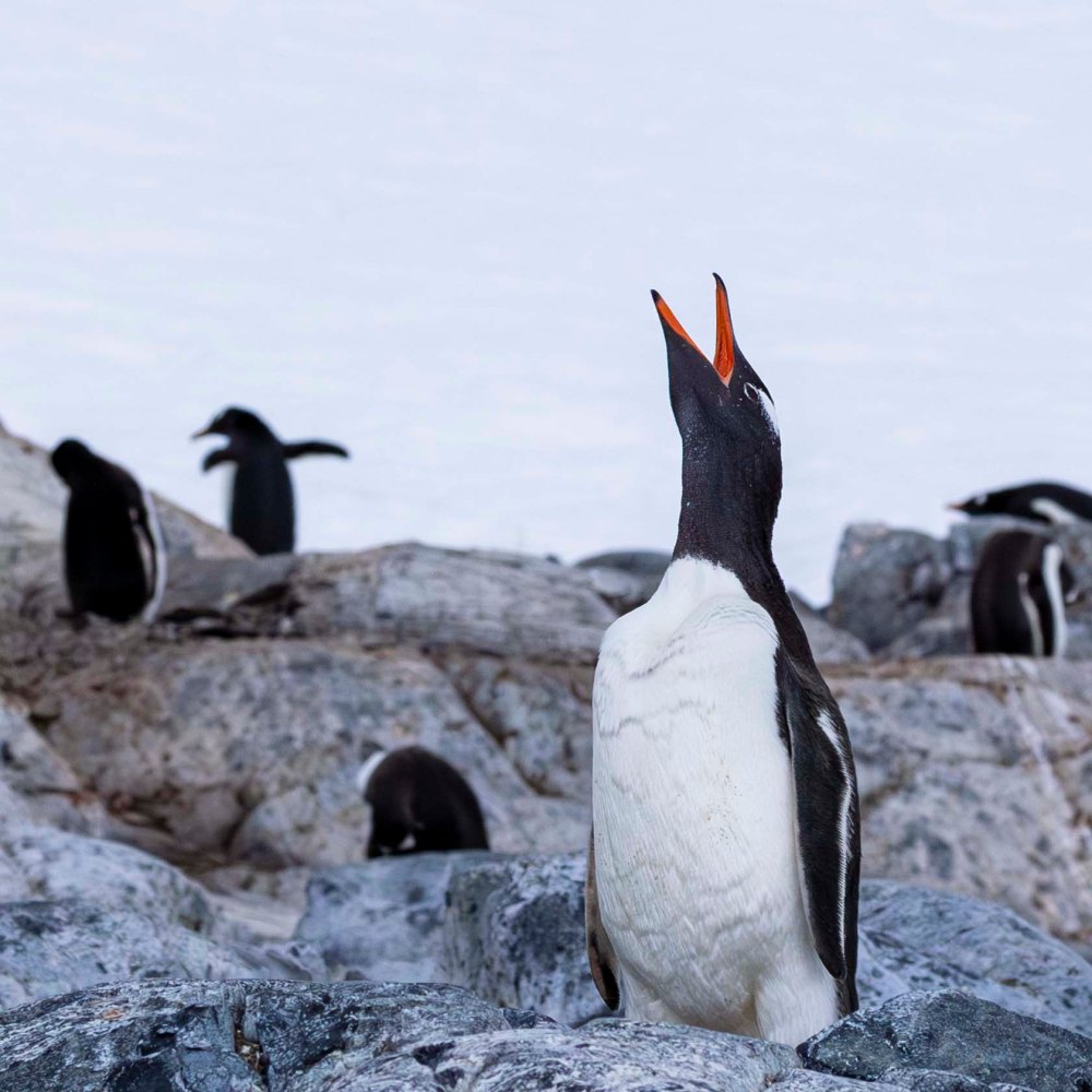 こちらはジェンツーペンギンたちです。 These are the Gentoo penguins.