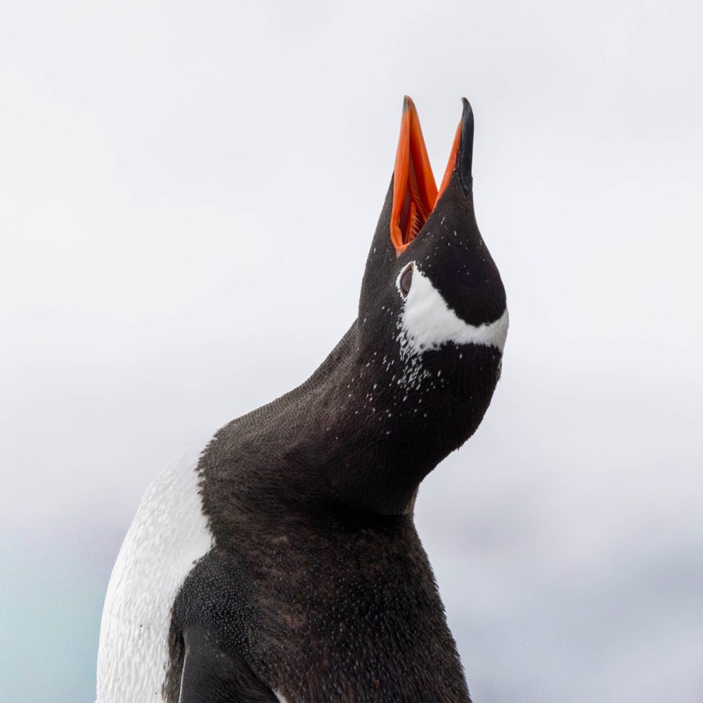 ここでジェンツーを例にとって、ペンギン全種の体の部位を観察してみましょう。まず足。足の指が3本で、アヒルのように指と指の間には水かきがついています。一つ注目したいのは、実は4本目の足指が内側のくるぶしあたりについていることです。犬みたいですね。 Taking the Gentoo penguin as an example, let us observe the body parts of all penguin species. First, the feet. They have three toes, with webbing between them like a duck’s. One point worth noting is that they actually possess a fourth toe attached near the inner ankle. Rather like a dog, isn’t it?