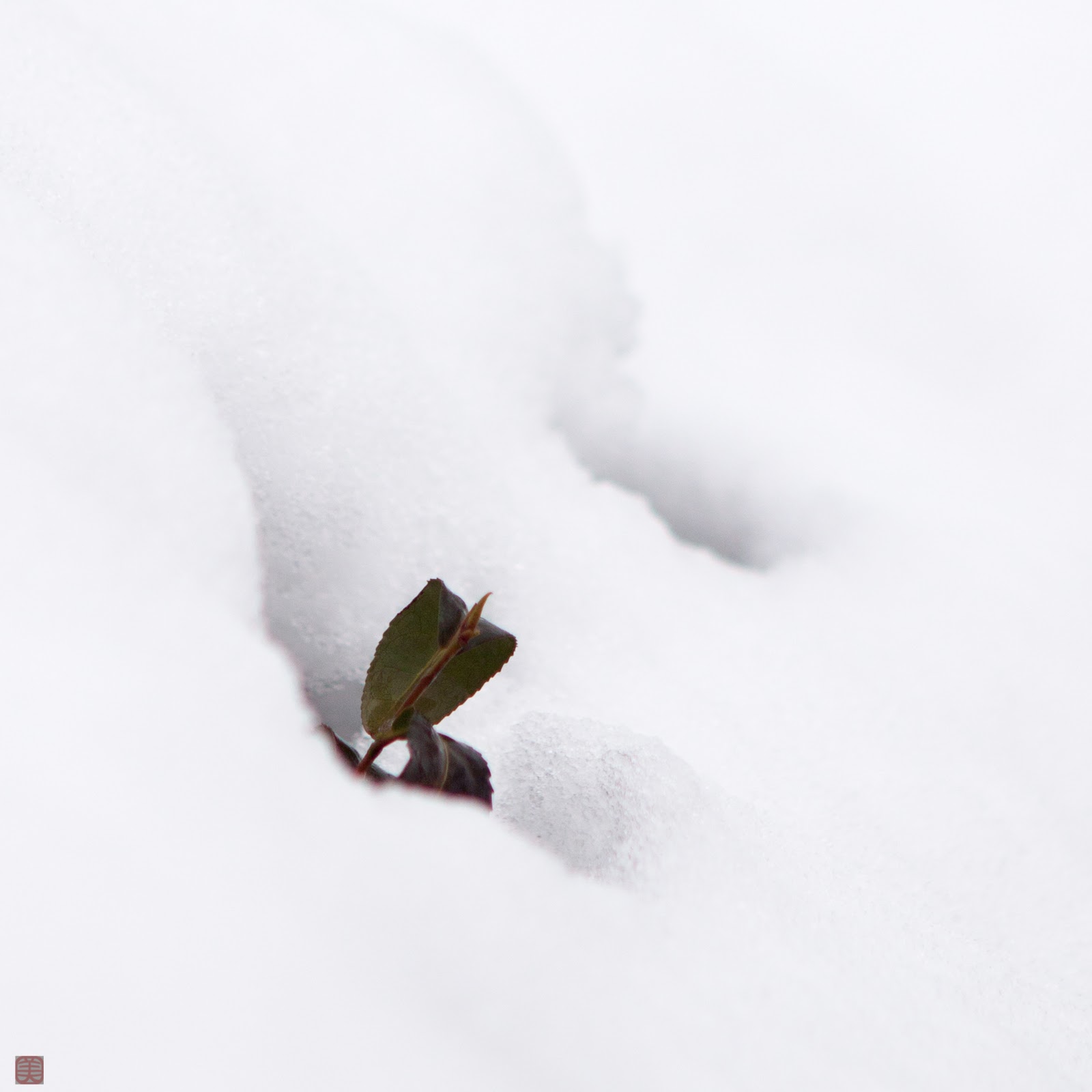 雪の中から一生懸命顔を出している新しい芽。