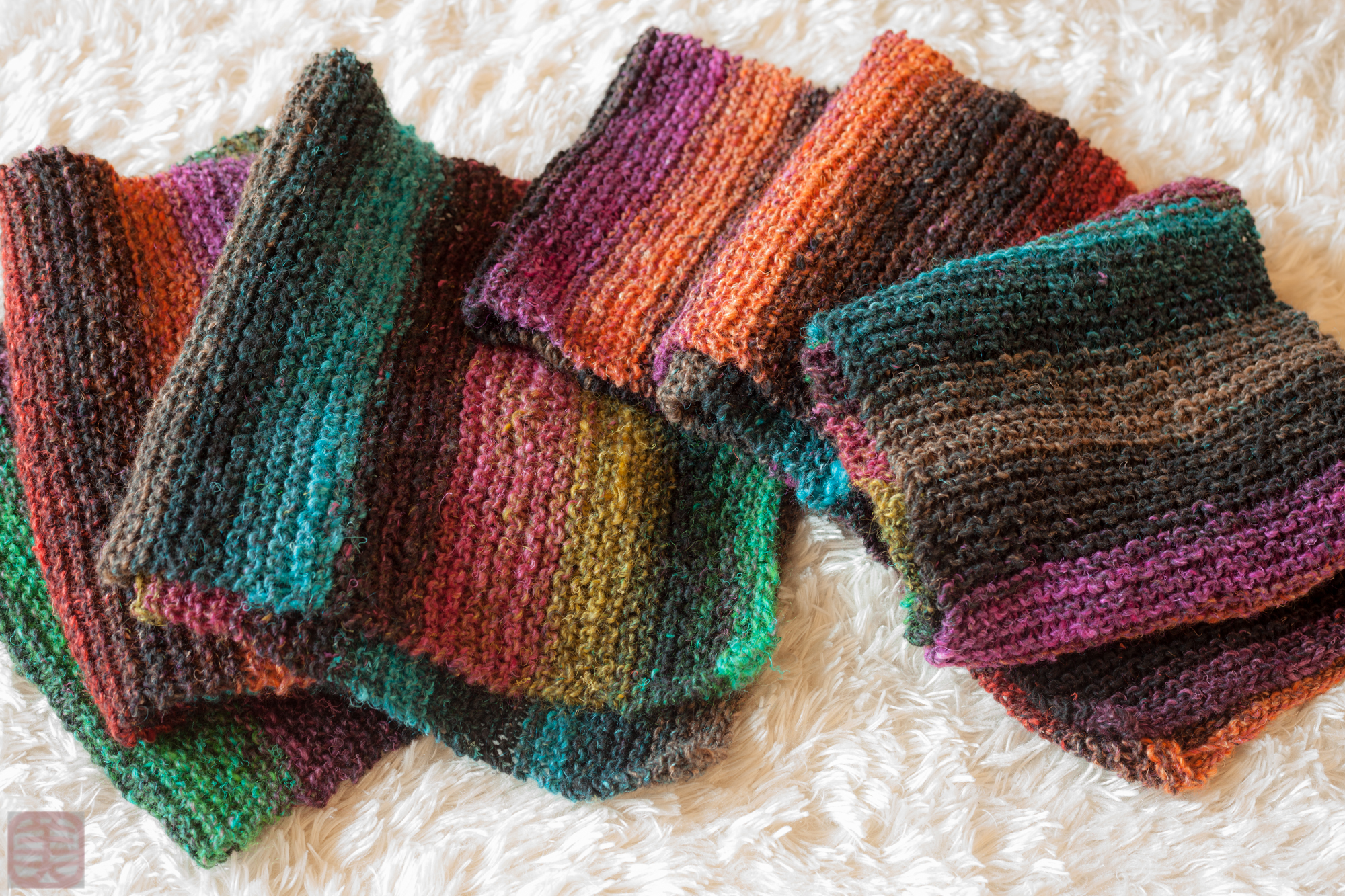 たくさんたくさん編みました。残り毛糸を組み合わせながら少しずつ編んでいったら、こんなにたくさんになっちゃった。