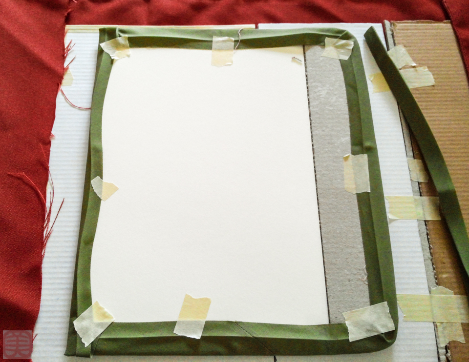 - 画期的な工夫は6 枚の厚紙を使ったことです。折り曲げる角に細い厚紙を入れることで曲げる部分に「遊び」ができ、最後の調整の時に柔軟性を与えることができたんです。もしかしてまだ誰もこの工夫に気がついてなかったりして。というか、ほとんどの人には必要ないものなのかも。なぜなら、普通はもっと薄くて柔らかい布を使うから。でも、私の場合は厚さ 2 – 3 ミリもある布を使ったので、何か特別なことをしないとだめだったんですね。プラス50点。