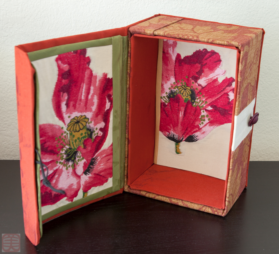 箱作がんばりますね。あんなに素敵なドラマチックな柄が内側にあると、ものを入れて、蓋を閉じてしまうのがもったいないくらい。ここにある仕上がりの写真のように、中を見せてディスプレーして置いたらどうですか。