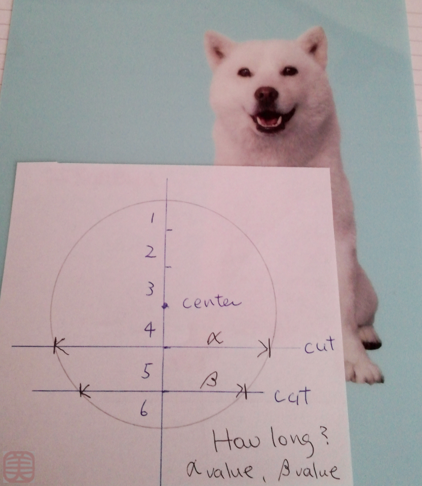 円形カッター、まだ届きません。犬のお父さんも一緒に待ってくれていますが、さすがにしびれを切らしています。そこで、やさしいお父さんは暇つぶしにこんな問題を出してくれました。