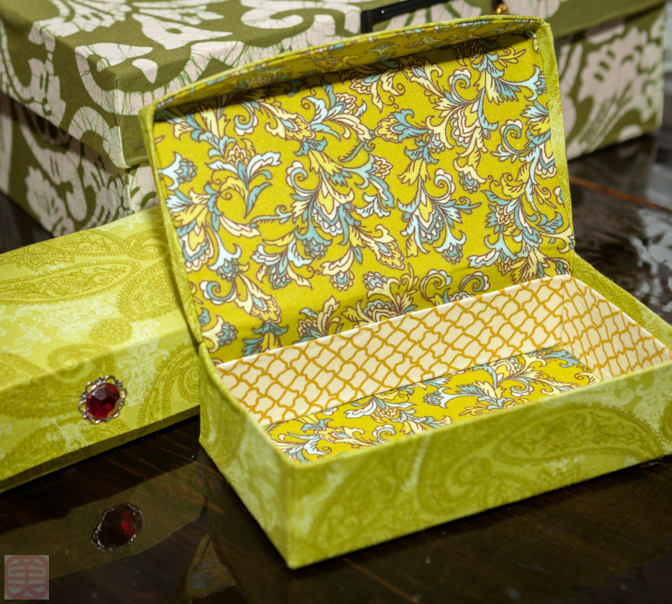 箱を作り始めて先が見えてくるころ、布が足りないことに気づくことが時々あります。最初から必要分だけそろえておけばいいものを、ザックリとしか布の確保をしないんですねー。