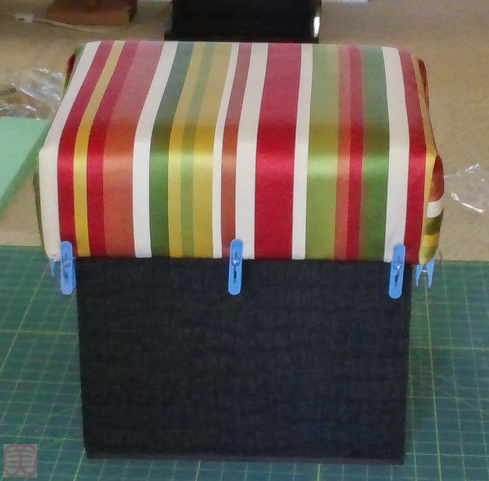 もとへ、これにあの縞の外布を貼ったらスツールのフタになります。