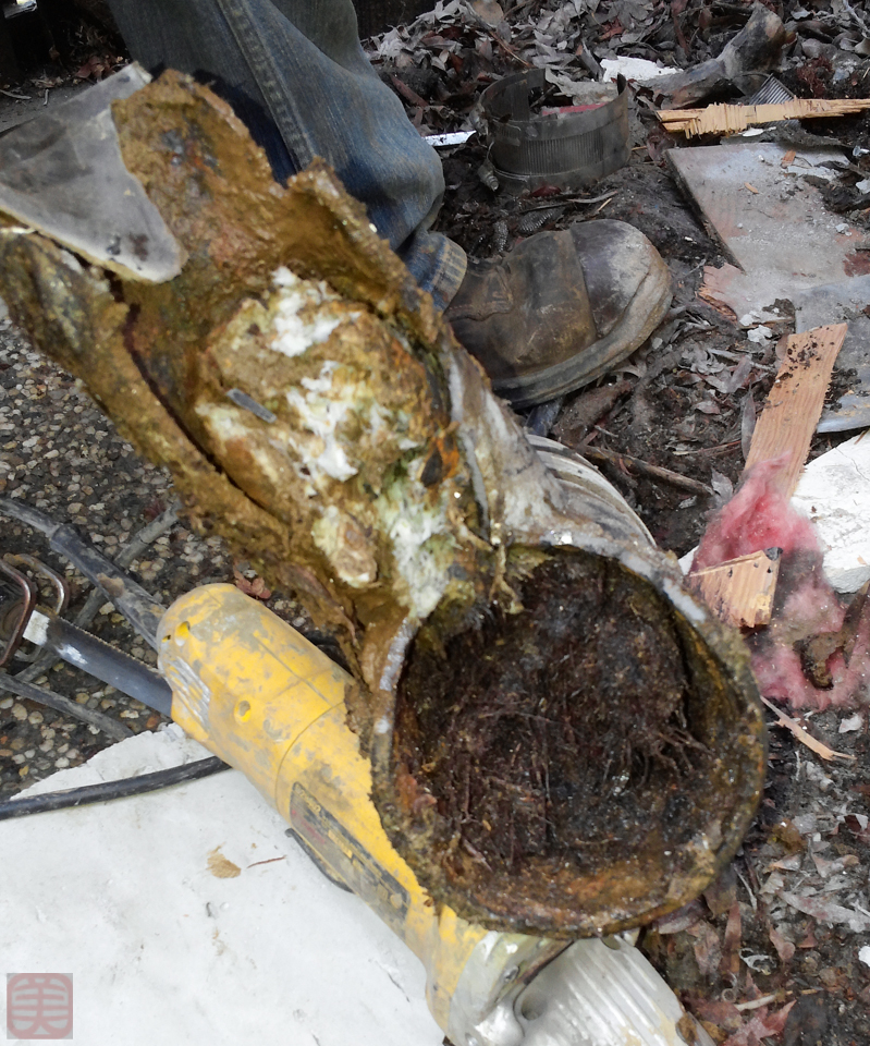 ね、困ったもんですが、下水管に根っこが侵入して詰まってしまったんです。それも1メートルぐらいぎっしり。