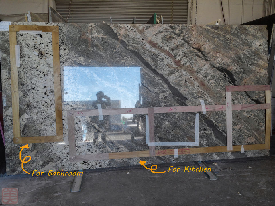 御影石をキッチンカウンタートップに使ったことはすでに書いたんですが、バスルームのカウンタートップは最後まで迷いました。なぜなら、二人の意見が一致しなかったからです。