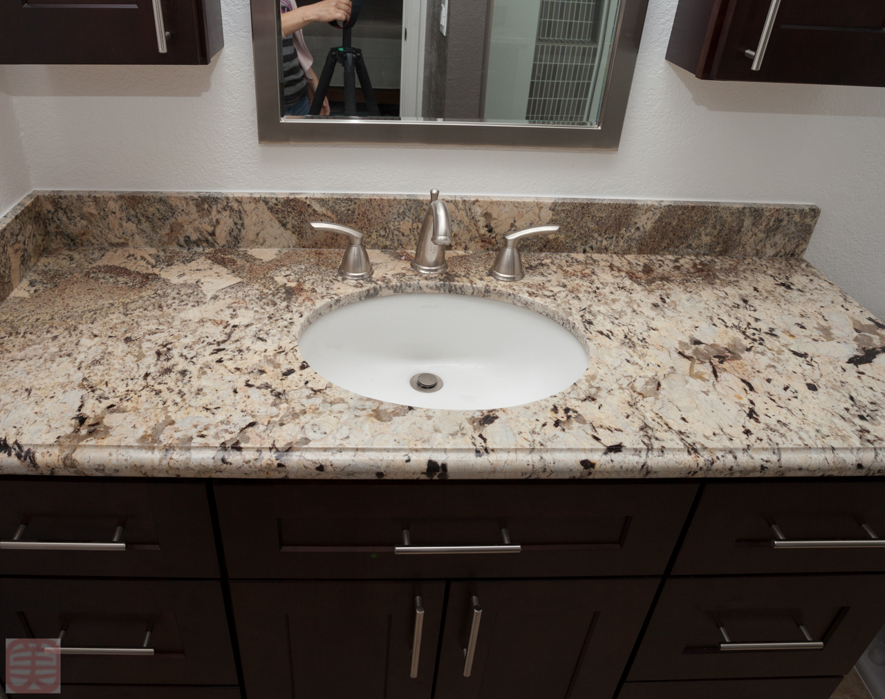 なるべく白っぽい部分をバスルームに切り取りました。チョコレートブラウンのキャビネットに合わせたかったからです。結果はご覧のとおり。