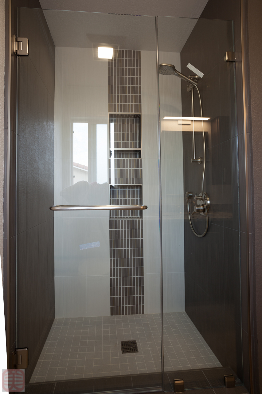 バスルームで欲しかったもう一つは理想のシャワーヘッド。14インチ (約 35 cm)の背丈の違いがある私達ですから、ニーズも違うわけです。上下に動かせるシャワーヘッドはとてもうれしい。そして、このシャワーヘッドは少ない水圧も強力にしてくれるフィーチャーがついているので気持ちがいい。水温調整も別途ついているので大抵はクルッとひねるだけでいつも同じ温度のお湯が流れてくれる便利物となりました。