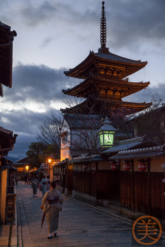 まずは夕日を見に産寧坂を通って清水寺へ散策に出ます。懐かしい風景です。昔訪れた美濃幸もそのまま。