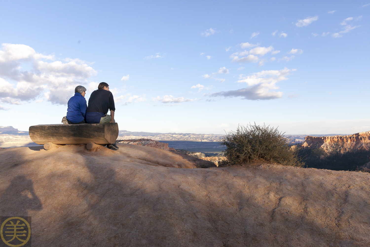 夕日を浴びたHooDooを眺めるカップル。言葉もいらないんです。ただただ雄大な景色を一緒に眺めて時を過ごす時、そんな人が横にいるんだと気付いた時、幸せの瞬間だと思いませんか?左下、再び影でお邪魔しております。