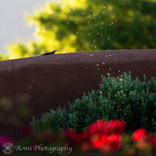 トカゲが白く光っている虫を見ているような光景です。やっぱりトカゲの国。