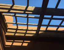 中庭には格子が付いているし、コウモリがぶら下がる格好の場所が他にもあるし。