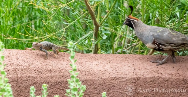 キャスト:警備隊長は Gambel’s Quail 、通行人は Desert Spiny Lizard