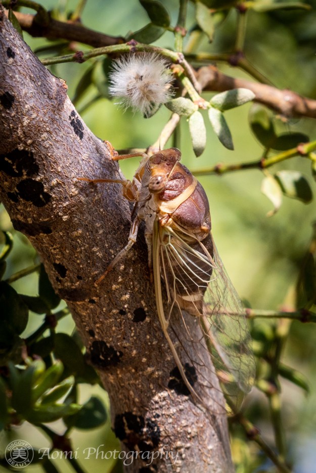 クレオソートの木の中に見つけたDesert Cicada 砂漠地方のセミ。