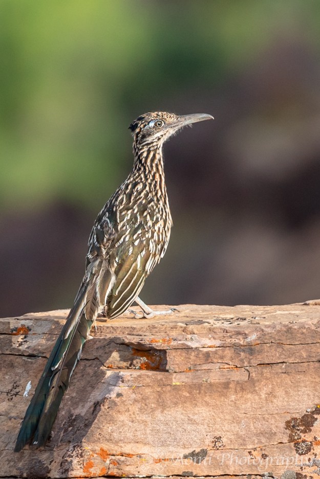確かにロードランナーです。彼も朝食のトカゲが見つからなくて暇そうです。それが理由かどうかわかりませんが、ポーズをとってくれました。 – It is surely a Roadrunner. He seems bored not finding any lizards for his breakfast. Because of that, or not, he posed nicely for me for a portrait.