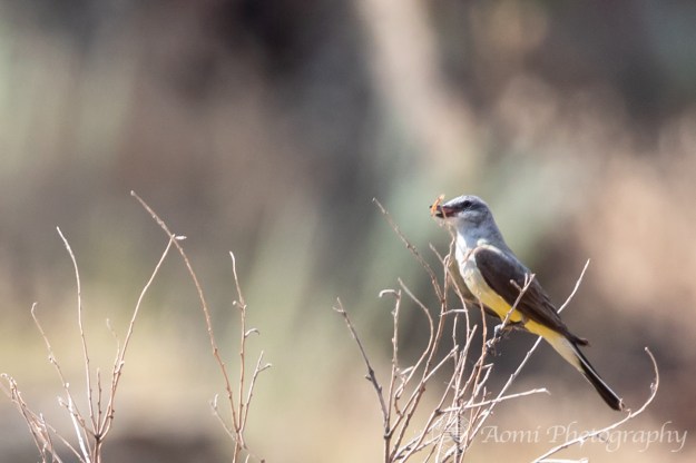 Western Kingbird は歌を歌うのに夢中です。 – Western Kingbird is really into singing.