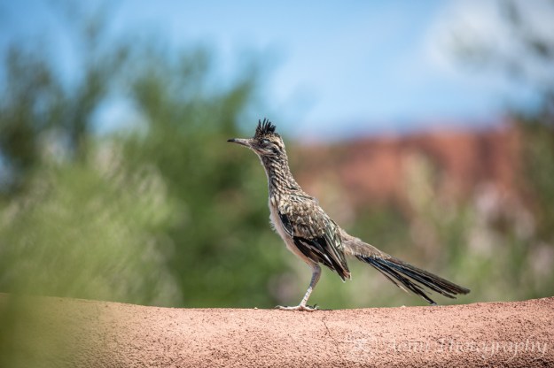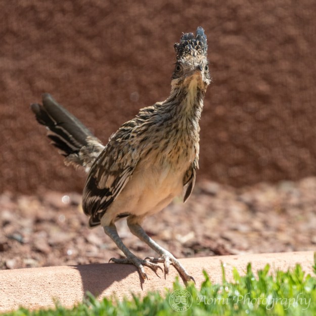 そんな私の裏庭に、ナント、今日、ロードランナーが来てくれたんです!!! – Poor me… but surprisingly, a roadrunner came over to my backyard today!!!