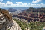 南側より高度が300 – 400 m 以上高いことや、コロラド川までのアプローチが長いことなどから、趣が少々違うようです。オリンピック国立公園に少し似ているような気がしました。道端の花や緑が綺麗でした。 – The north rim is more than 1000 feet higher than the south rim, and the approach distance to get to Colorado river is much longer than from the south rim. I was informed that the impression is quite different. My impression was similar to Olympic National Park because the flowers and greenery are similar on the way to get to the north rim.