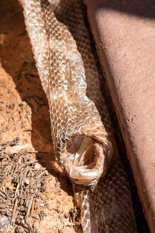 よくもまあ、抜け殻はこんなに完全で残るものなんですね。これ、一体どうしたらいいでしょう。ジェイクからのプレゼント? – It’s amazing that the shell could keep its form so well after the snake molted. Anyway, what am I going to do with it now? Is this a present from Jake?