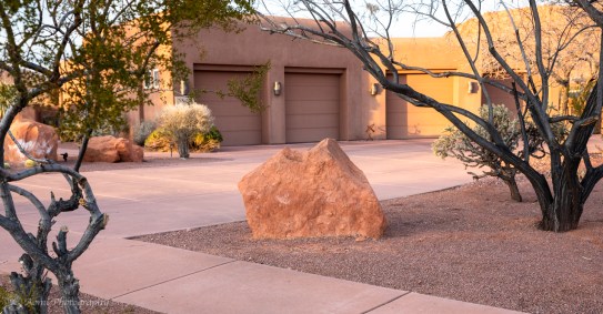 Kanab の赤石はもっと硬いらしい。来週、石屋さんが引き取りに行って、その後、家の番号をカービング。そして、ここに設置されます。- The red sandstone in Kanab is known to be harder. Once the rock we picked out is moved to the shop, they will engrave our house number and install it at the front of our lot.