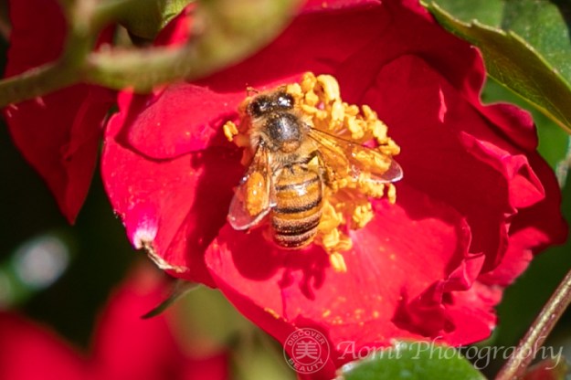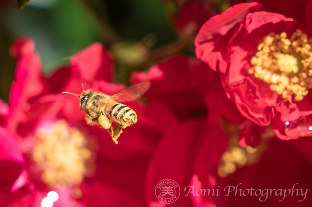 裏庭に咲いたバラの森はハチたちの天国です。 – The rose field in our backyard is their heaven.