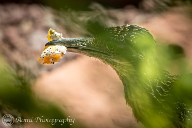 口にくわえているのは孵化する前の卵のようです。さっさと食べずにくわえているところを見ると、彼女へのプレゼント、もしくはひなたちへの食べ物。でも、前回、カエルを加えているところを目前にして撮れなかった事を思うと、オオミチバシリから私への贈り物です。 – The thing he is holding in his beak looks like an egg almost ready to hatch. Could it be a gift for his girlfriend or food for his baby? In any case, it is a gift to me from the roadrunner because I missed a Kodak chance when he had a frog the last time.