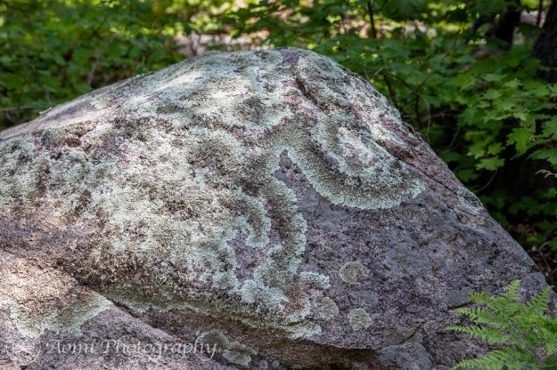 その多くは、モンゾニ岩となり地表に現れています。ライキン(地衣類)に覆われているモンゾニ岩。- Laccolith is now exposed on the surface as Monzonite rock.  Below is a Monzonite rock covered by lichen.