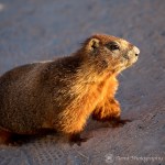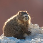 • パークレンジャーの代わりにバンちゃんの足跡の上に立つマーモット。- A Yellow-bellied Marmot on top of Banchan’s footprint in place of a Park Ranger.