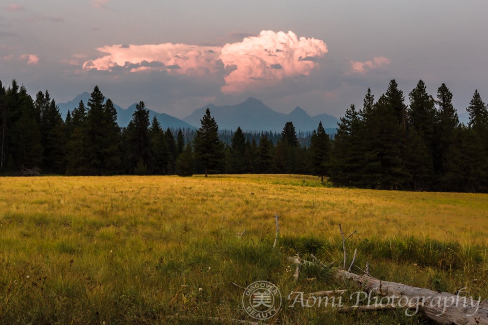 ノースフォーク フラットヘッド川沿い、太陽の最後の光が山の向こうに落ちたのでカメラをしまい始めたら、すごいことが起こってました。 By the North Fork of the Flathead river, the last bit of sunlight disappeared beyond the distant mountains. So I put my camera away, but an incredible action happened there unexpectedly.