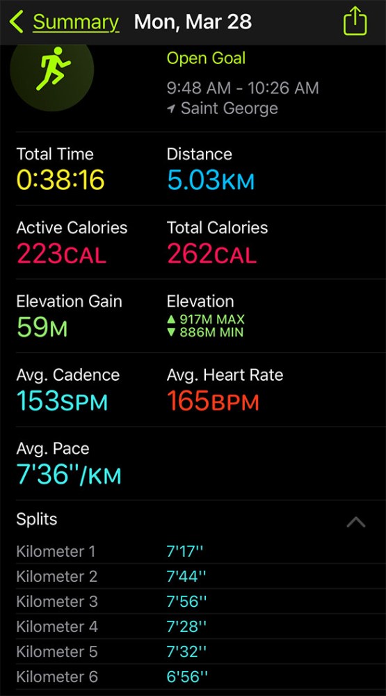 先週の金曜日に同じルートを走ったときの結果。42分近い。 I ran the same route last Friday, but it took nearly 42 minutes.