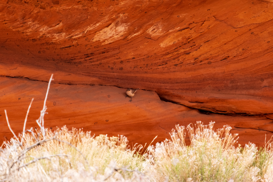 追いかけていたら岩の奥の方に飛んで行きました。きっと巣があるに違いないと探しましたが、見つかりませんでした。 The wren was flying here and there and went into a slit in a large rock. We followed it and looked for its nest, but couldn’t find it.