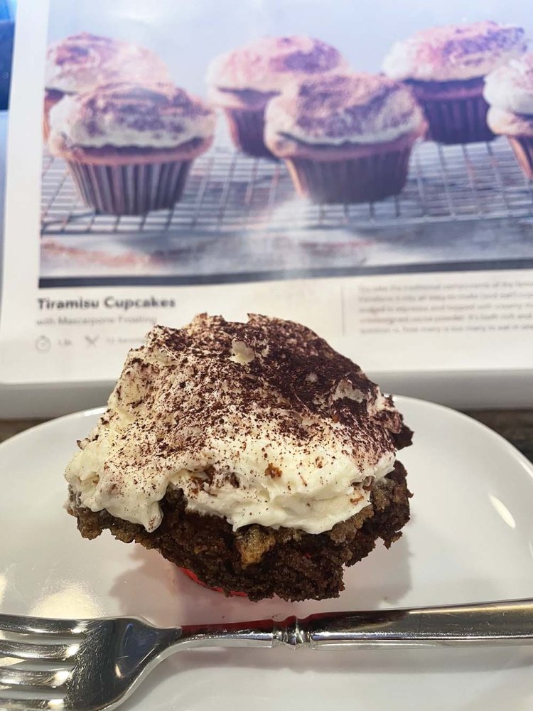 見た目は良くないけど、何とか出来上がったティラミスカップケーキ第1号です。美味しかった。 They don’t look good but the first Tiramisu cupcake came out very good. Delish!