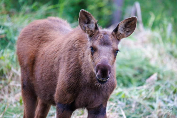 ところがその後、ホテルへの帰り道、道路で再び出会ってしまいました。お母さんが私たちを一喝するように見つめ、歩き去っていったのを見て再び安堵しました。 On the way back to our hotel, we met them again on the paved road. The mother moose looked at us as if she was scolding at us. “Leave us alone!” Then they went away. What a relief, yet again.