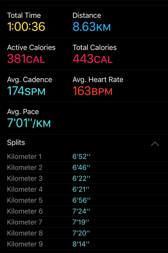 トレーナーのグレッグが、トレーニング前に60分走れと言ったので走ってみました。結果が出せなくて、ちょっと残念。 I ran 60 minutes before my training session because my trainer Greg told me to do so. It is painful not to be able to produce a better result.