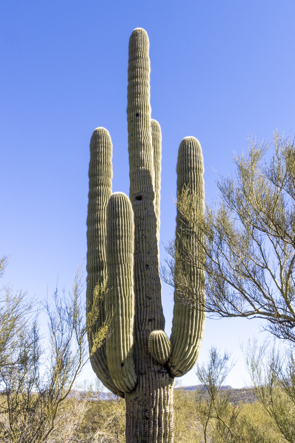 サグワロはソノラ砂漠地帯でしか生息しません。隣のモハビ砂漠ではやはりサボテンのジャシュアツリーが生息しているんですが、両者は共存することはなく、生息地がクッキリと分かれています。きっと環境に深く関連しているのでしょう。ちなみに、私たちの住んでいるユタ州、セイントジョージではどちらも生息していません。 Saguaro live only in the Sonoran desert. Joshua trees live in the Mojave desert right next to the Sonoran desert. They are so close to each other but they don’t co-exist in either area. I assume it’s environmental related reasons separating them. Incidentally we have neither plants in my town, St. George, UT although it touches the northern tip of the Mojave desert.