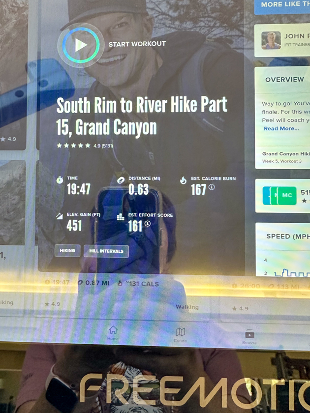 トレッドミルでグランドキャニオンの仮想ハイキング。 A virtual hike at Grand Canyon with a treadmill.