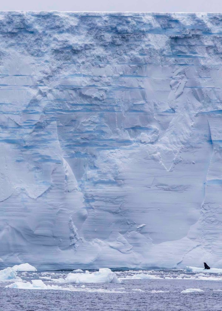 氷山の近くの氷片の上にいるアザラシを見ると、氷山の大きさがわかります。 Seeing a seal on an ice floe near an iceberg gives you an idea of the iceberg’s size.