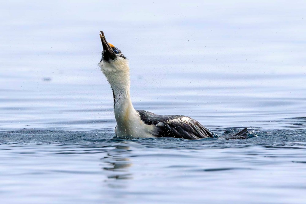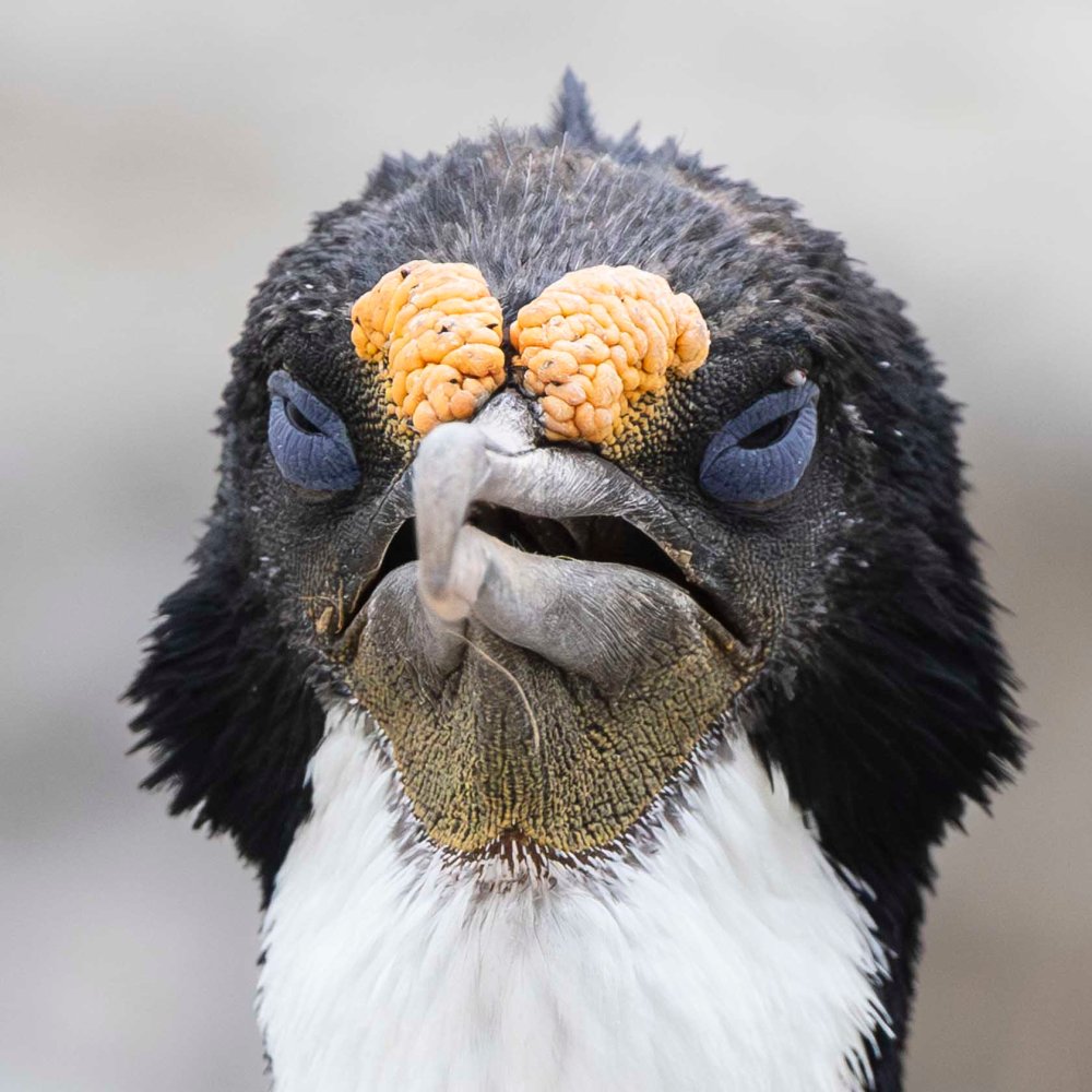 ところで、近くから観察できたおかげで気がついたことがありました。ナンキョクムナジロヒメウの目は青いのだと思っていました。遠くから見るとそう見えるんですね。 On another note, observing them up close revealed something I hadn’t realised before. I’d always thought the eyes of the Antarctic shag were blue. It turns out that’s just how they appear from a distance.