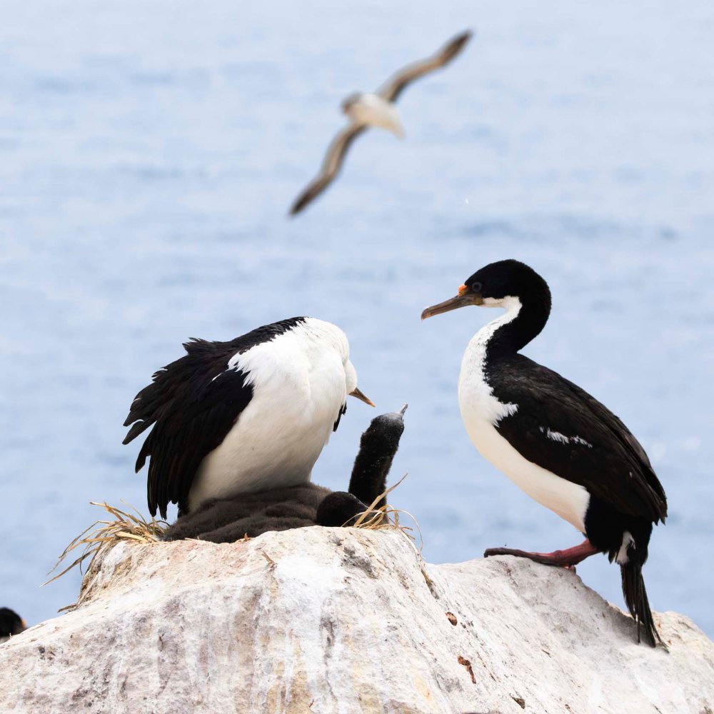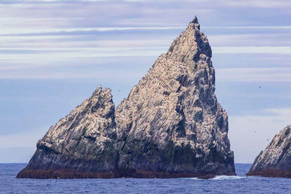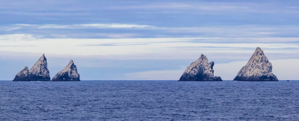 サウスジョージア島からフォークランド諸島に向かう途中に6島の小島があり、シャグロックと呼ばれています。En route from South Georgia to the Falkland Islands, there are six small islands known as Shag Rocks.