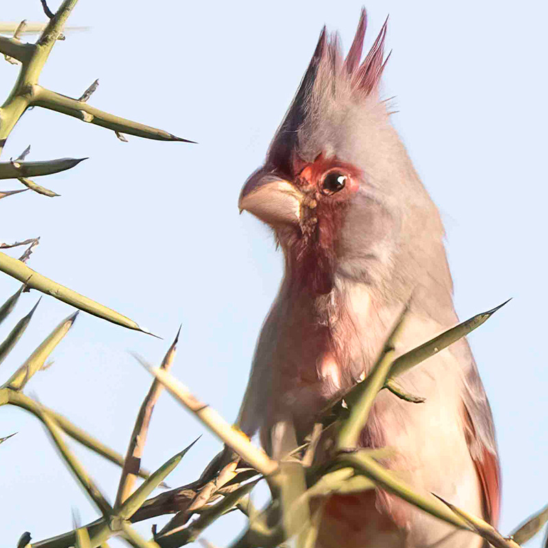 裏庭には多分このメグロトウヒチョウが巣を作っているのではないかと思われます。 In other bird news, there is probably a nest of this Abert’s Towhee in our backyard.