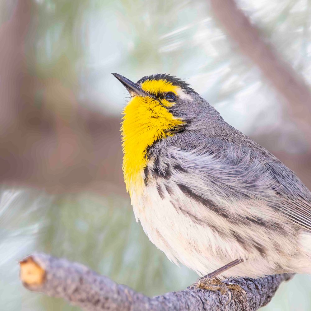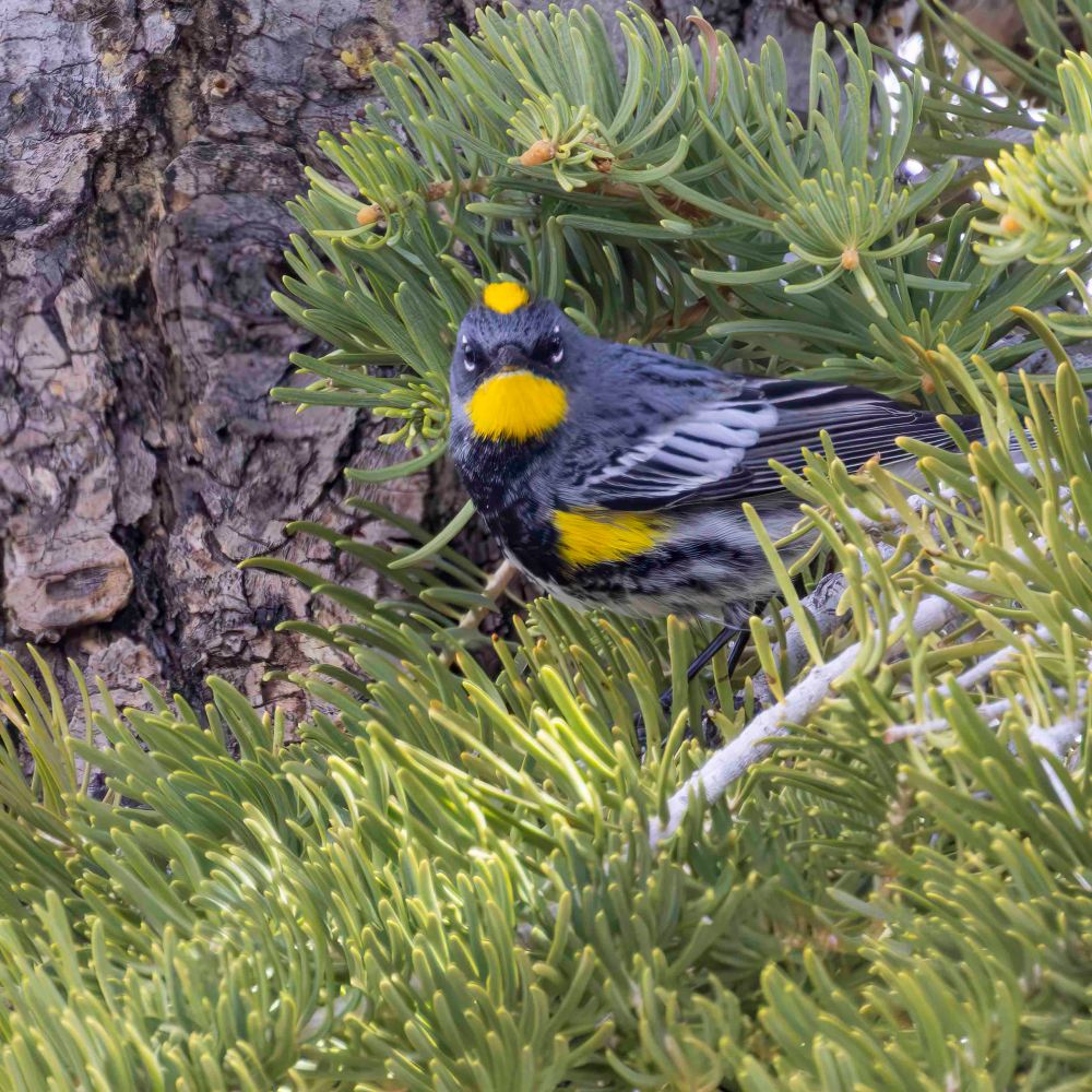 グレースアメリカムシクイです。バードフェスの最中にザイオン国立公園の西で見つけました。この鳥も私にとっては、初顔です。 This is a Grace’s Warbler. We found it in the western part of Zion National Park during the Bird Fest. This bird is also a new bird for me.