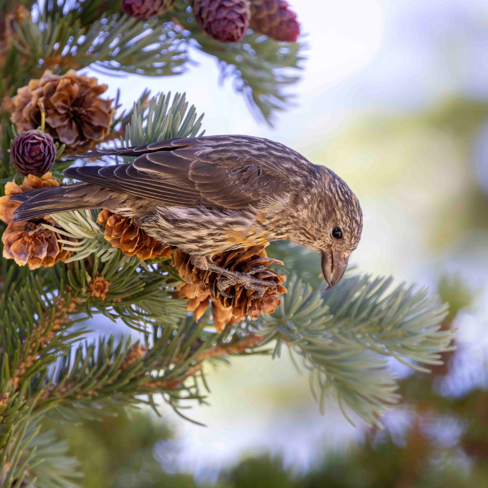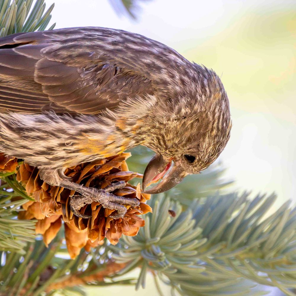 この嘴の形状が松笠の奥にある種をうまく取り出すことを容易にしているということです。 The shape of this beak allows the seeds to be successfully extracted from deep within the pine cone.