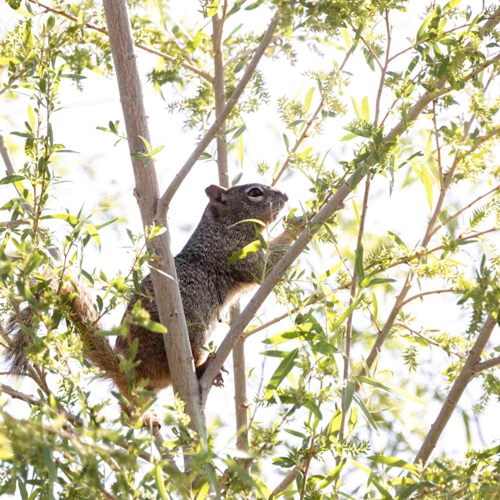 このジリスもそんな光景を見てか、自分も鳥のように空を飛びたいと思ったのでしょうか。高い木の上まで上り詰めていました。 Perhaps this Rock Squirrel saw such a scene, or perhaps he too wanted to fly like a bird. It climbed up to the top of a tall tree.