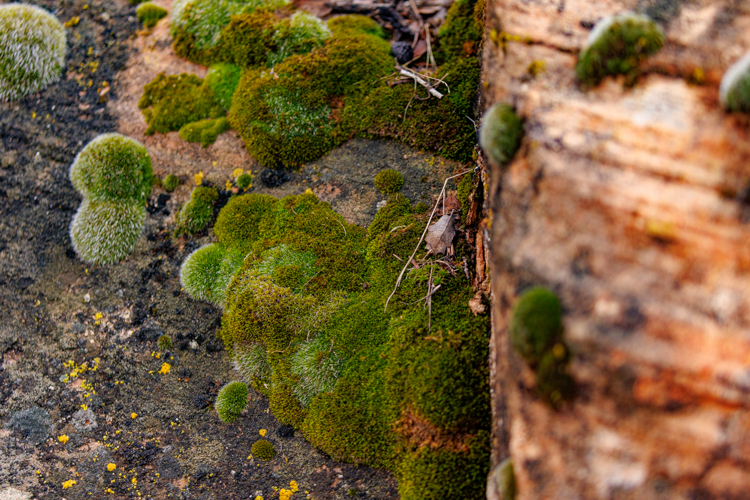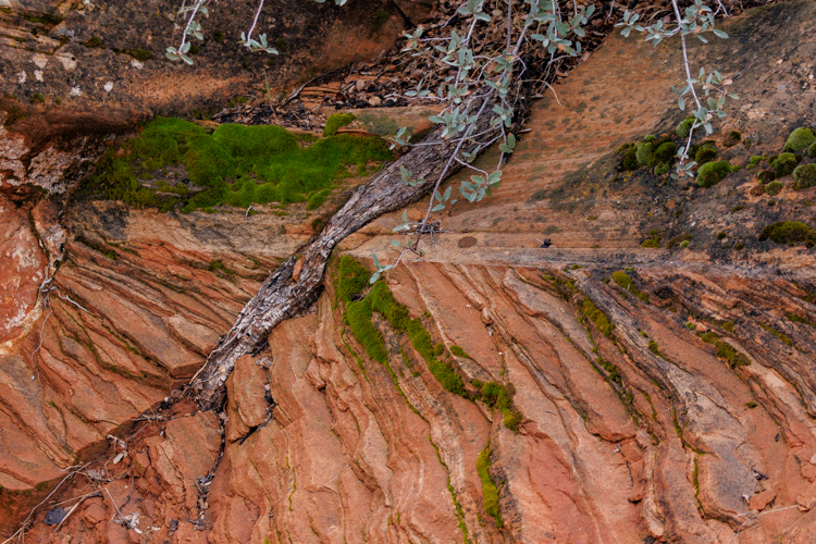 これの写真にも苔が生えているんですが、よく見ると岩の中を突き抜けて伸びているのが見えます。すごい生命力です。きっとこんな根っこがあと100万年もしたら木の化石になっているのかもしれません。 The picture below also shows the moss, but if you look at it closer, you can see a root stretched through the rock. How awesome to see such vitality. I imagine that it will become petrified wood in a million years.