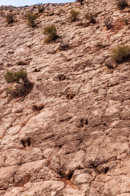 この地層には無数の足跡が残っています。斜めに傾斜した壁に残っている足跡は、その後の大陸移動が激しく何回もあっただろうとも推測させてくれます。 This stratum preserved many footprints very well. And the slanted strata in this area made me guess that many continental movements happened since then.