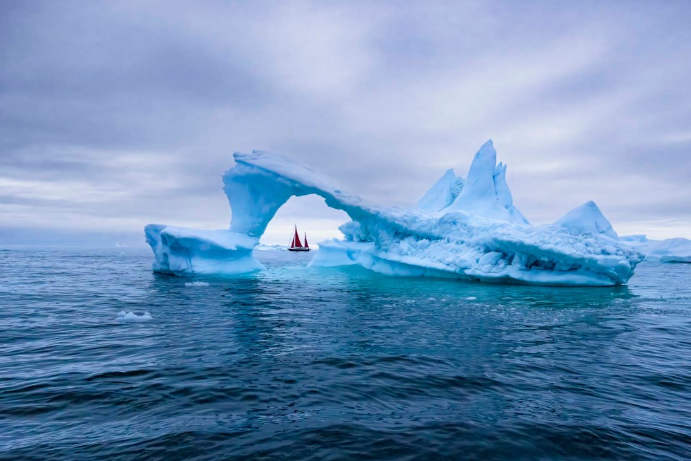 そして、何回も何回も氷山のアーチの向こうに船を配置して、ベストタイミングを待ちました。 And many, many, many times, we positioned the ship behind the arch of icebergs and waited for the best timing.